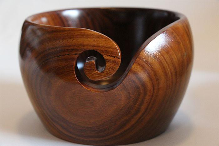 Gorgeous hand made wooden yarn bowls stay put and keep your yarn to hand beautifully. 2 Sizes, three styles, these make stunning gifts!